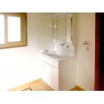 収納力が少ない一面鏡と 洗髪できないシングルレバー水栓の化粧台でした。