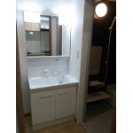 | その他採用機器・設備 | 洗面化粧台 LIXIL PVシリーズ扉タイプ PVN-755S(S) w750xH1850 シングルレバー洗髪シャワー水栓 3面鏡ミラーキャビネット、白熱灯、くもり止め付 洗濯パン640×640 LIXIL PF-6464AC/L11 洗濯パントラップ LIXIL TP-32 洗濯用水栓 LIXIL LF-50KQ(給水のみ) |