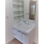 給湯器は外に付いているため、使いずらいし、鏡が見づらい。 白基調とした清潔感ある洗面台の希望します。収納力アップの 必須です。