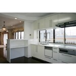 今回の工事は、3Fでの2世帯を1世帯にする大工事でした。工期は2ヶ月間に渡り、また、大変熱い季節でもあり、上記のお客様の声にもあるように現在はエレベーターがありませんでしたので、商品の搬入なども、階段では搬入できないものなどもあり、いろいろと工夫をしながら工事を進めていきました。お客様は、度々海外へも行かれており、大変デザインにも詳しく、センスの良い方でしたので、こだわりのポイントやデザインのアクセントなどを忠実に表現することにも注意を払いました。2ヶ月に渡る長い工事期間をご一緒にお付き合い頂き、大変お疲れにもなったことと思います。恥ずかしながら、我々が発見する前にお客様からご指摘を頂いた不具合箇所などもありました。そういったお客様の熱意もあり、美しく機能的な、ご新居が完成出来たと思います。有難うございました。