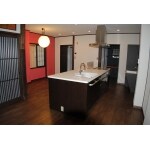 自然素材や無垢の木の質感を優しい照明の光でさらに雰囲気を醸し出し、一面壁をアクセントカラーに仕上げることで、一層和モダンのテイストに風味を加えました。