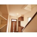 玄関ホールをリノベーション。 玄関収納、ホールの床材を交換。 廊下にある収納扉も交換、壁、天井のクロスも張替を行い、家全体が新築に生まれ変わりました。