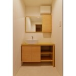 女性専用マンションとしては洗面所も大切な場所です。 木製製品を採用することで自然をイメージする効果をご提案しました。