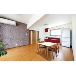 大きな机をおいてお子さん達家族が全員揃って集まれるスペースを確保しました。たくさんある中から選ばれた石目調のアクセントクロスで落ち着いたリビングとなりました。