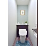 スペースを広げることはできないのでコンパクトで手洗いが付いたタイプをご提案しました。一体型でなく背面のボックスに手洗いがつくタイプで前出し寸法も短くスッキリ見えます。もちろん配管、タンクが収納されているので掃除が簡単になります。