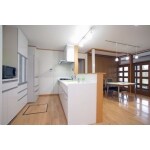 仕切られていた部屋をつなげて広いLDKとした上で、キッチンは対面式に変更。システム収納を設置して収納力を向上させました。壁には一部エコカラットを採用したことで、魚を焼いても翌朝匂わないと好評です。