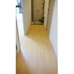 (旧京都建物株式会社(京都建物工務店リフォーム)での事例です。)水漏れの影響で廊下が湾曲していましたが、下地から貼り替えさせていただき、新築のように明るい廊下へ生まれ変わりました。