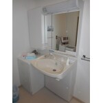 以前の洗面台は、シンク下に収納があり車イスで使用するには不便でした。そこで、洗面台のシンク下にフリースペースがあり、車いすを滑り込ませることができるTOTO座・ドレッサーへの交換を提案させていただきました。洗面化粧台のサイズが変わると、既存の洗面化粧台の跡が見えてしまうため、壁天井のクロス・床クッションフロアの張り替えも一緒にご提案させていただきました。