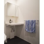 今までは脱衣室に洗濯機と洗面化粧台が置いてありました。 お母様の動線等を考えたときに、寝室から近くに水周りがあると使い易いと思いました。 また、タンクレストイレを採用したので別途手洗い器をつけなくても良いように洗面台と手洗いを兼用できるようにこのような配置となりました。 カウンタータイプなので収納はないですが、将来車椅子になっても使うことの出来るバリアフリー設計となっています。