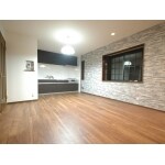 リビングはフローリングを含め内装を一新。壁の一面は柄物のクロスを採用し、空間に変化を持たせています。