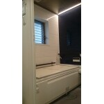 照明もライン照明でデザインがよく広くすることで 足を延ばして浴槽に入ってもらえるようになりました