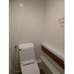 メリハリのあるカラーでデザイン性の溢れる空間になりました。 アクセントクロスを正面に貼ることで、扉を開けた時の印象が心地よいデサインです。