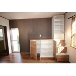 外付けの引き戸を取り付けることにより、壁を壊さずに開き戸から引き戸への変更を可能にしました。「扉の色と壁の色」「床の色と収納家具の色」を揃えることにより、おしゃれな空間を演出いたしました。