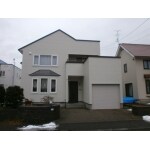 白いサイディングとこげ茶色の屋根板金で、明るくシックにまとまりました。