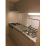 既存のビルトインコンロを再使用したいとのことで、一体になっているガスオーブンだけを撤去し、収納スペースを増やしました。吊戸棚と高さを短くしたことによりスッキリした空間になります。木目調の扉面材が温かみのある色へ変更しました。