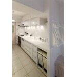 二人目のお子さまの誕生を機に、築19年の中古物件を購入しリフォームを希望された施主様ご家族。「ナチュラルテイストなインテリアに」という奥様のご希望と、自然素材の優しい風合いが調和し、あたたかい雰囲気のお住まいをご提案しました。やわらかな白でまとめたインテリアで、家族と会話もできるカフェのようなキッチンがリフォームのメインテーマです。 こだわりのキッチンは、小窓や腰壁、多目的につかえる造作ベンチで小さなお家のようなイメージを演出し、お手製のケーキを並べると、まるでカフェのような雰囲気に。白を基調にしながら、床材の無垢のパイン材は木肌がわかるくらいに、腰壁やリビングドアは真っ白にと、塗装にも変化をつけました。和室を無くしてLDとひとつながりにした空間は、お子様たちの楽しい遊び場。床の間のスペースに合わせて、絵本やおもちゃをしまえる収納も造作。お子様たちが自由に楽しくたくさんの本を読める環境をリビングに創りました。