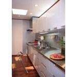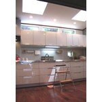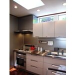 リフォームで[こだわりのあるおしゃれな空間づくり]をくりかえしておられ、今回は『明るくスタイリッシュなキッチンを』とのご要望でキッチンスペースを一新することになりました。清潔感あふれるホワイトとシルバーの組み合わせ、ウォールナットの床材が明るいインテリアをひきしめてメリハリのある空間になっています。天窓やウォールキャビネット上部に設けた窓から自然光がさしこむ心地よいキッチンスペースでのクッキングタイムは楽しいリラックスタイムでもあります。
