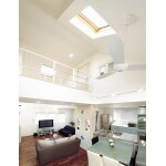 2世帯で気持ちよく暮らすために、まずお母様と施主様ご夫婦の居住スペースを1,2階に分離し、ご夫婦のスペースを少しでも広げるために、屋根を上げ小屋裏的なスペースを作り出し、そこに寝室や仕事部屋などを配置しました。その結果、2階部分は天井を高くでき吹き抜けのある広いLDKとして、十分に空間的なゆとりを持った部屋にできました。もちろん採光にも配慮し、LDKは3面採光にしてあります。素材についての奥様のご希望は、「誕生したばかりの子供のためにも、安全な無添加素材を使った家」であることでしたので、床には無垢のナラ材、壁は珪藻土やエコクロスなどの自然素材を採用し、本質的な部分から安心、安全を確保できています。