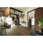 邸宅の強度維持に残す筋交いや柱は 現し柱として衣装替えし 空間にアクセントを添えました。 天井には 付け梁を連続して 2室をまとめた細長い空間にリズム感をプラス。 奥様の相棒・カヌーは 天井から吊り下げる 飾り収納へ。 木肌の美しい船底を眺めるラウンジには アースカラーのタイルを敷き込み 奥のアトリエと波長を揃えながらも趣きの違う空間に仕上げました。 エントランスから趣味室に至るアプローチも玄関の雰囲気を一新しイメージに奥行を持たせています。 素材選びはアンティークがお好きな奥様に合わせた「大人のためのヴィンテージ」な仕立て。 大人だからこそ許される「遊び」が詰まった寛ぎの室内です。