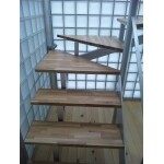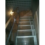 ガラスブロックとアルミフロントサッシで囲まれた階段室、タモ集成の木質感とFRPグレーチングの無機質な感じが相まって透明感あふれる中にも温かみを感じさせます。