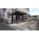 自転車の雨よけにご自身でテントをつけられていましたが、今回サイクルポートの設置をご希望されました。 外構を一部削りサイクルポートおよびスタンドの設置をしました。