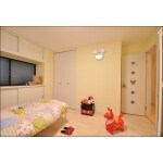 洋室の壁紙には落ち着きと柔らかさが出るように淡い黄色を選びました。また、ディズニー好きのお子様の部屋にはミッキーの扉を採用しました。