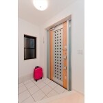 明るい玄関になるように開口を設け、採光のとれるタイプの玄関扉を採用しました。また玄関正面にカウンターを設置し、表情豊かな空間になりました。