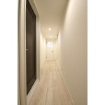 中廊下ですので暗く、昼間でも電気を付けなければ行けない状態でしたが、フローリングの色を明るくしたり、建具に明り取りを採用したことにより、明るくステキな廊下に変身しました。