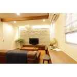 以前はキッチン・食堂・居間と細切れの間取りだった為、家族7人が一度に集ってゆっくり過ごすことができなかった施主様邸。その三部屋が大空間LDKになった事で皆が一部屋に集えるようになりました。 特徴的なのは部屋のサイドに備えた超ロングのデスクカウンター。椅子を置き、勉強・遊び・仕事など各々の作業をしながら一緒にLDKで過ごすことが可能に。お子様たちは帰宅するとここで真っ先に宿題をする習慣がついたそうです。 本棚はリビング収納も兼ねた大容量のものを設け、テレビボード裏にはアクセント壁と間接照明を設置。素敵な雰囲気の中でそれぞれに過ごしながら、家族の団らんを楽しめます。