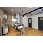 ステンレスキッチンはスペースに合わせてオーダー制作。 角ばったフォルムと飽きの来ないシンプルなデザインがお客様のお気に入り。 背面は中古で購入された業務用の調理台。 少しの傷も味が出ており、素敵です。