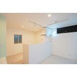 白を基調とした対面式のオープンキッチンです。リビングを見渡すことができ、家族との会話も弾みますね。ハイカウンター仕様のため、リビング側からは手元が見えないので、来客時にも目線が気になりません。