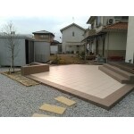 家族で憩えるベンチ付きのテラススペースと、お子様が裸足でわいわい駆け回れる人工芝の広場を作りました。その他のスペースは防草シートと砂利敷きで雑草対策をしています。庭の外周には木目調のフェンスで程よい目隠しをしています。