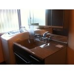 お風呂、トイレとも統一感を持たせたブラウンの洗面化粧台をお選びいただきました。 洗面化粧台だけでなく、お風呂やトイレも含め統一感のある空間になりました。