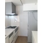 間取り変更に伴い、キッチンの設置面も変更しカップボードと冷蔵庫の置き場も確保しました。
