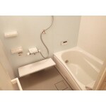 ユニットバスへリフォーム。 床はカラリ床を使用していますので、タイルに比べ柔らかく、滑りにくくなっています。