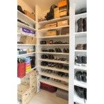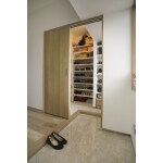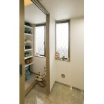 洋室を1室無くし、その分洗面所と玄関スペースに充てる提案をいたしました。 玄関にはウォークインクローゼットを造作し、靴などを沢山収納出来るようになりました!靴のまま行けるように半分玄関から地続きになっています。