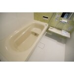 当初はスペースの関係で、ワンサイズ小さいユニットを計画しておりましたが、ご主人様の背がとても高いので、やはりワンサイズ大きくして設計させていただきました。 窓が無い浴室ですので、お色は明るく、また温かみのあるお色でお選びになる事をおすすめいたしました。 アクセントウォールを選ばれましたが、居室のアクセントカラーと同系色なのでとても良い感じにまとまっています。