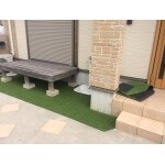 (旧株式会社ウイングでの事例です。)当初は砂利を敷くプランと人工芝を敷くプラン、タイル貼りのプランと提案しました。 水の流れる勾配などに気を付けて提案しました。