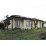 リシンの吹き付塗装の為、汚れが付着しやすいので、汚れが付きづらいシリコン系塗料で塗装をご提案いたしました。 併せて、足場を設置しておりましたので、お客様が気にされていた屋根材のずれ等、点検補修いたしました。