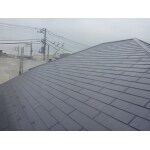 屋根は、遮熱塗料で仕上げました。 施工前の状態は、苔や割れが多数発見できたので高圧洗浄できれいにし、しっかりと下地処理と雨漏り対策を行ってから塗装を行いました。吸い込みも考慮して4工程で施工し遮熱塗料の期待対応年数を保持出来る施工を行いました。 色は落ち着いた雰囲気にしたいとお客様からのご要望がありましたので、暗い茶系で塗装しました。