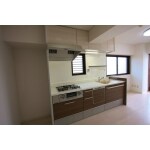 2列で対面型だったキッチンは壁付け型に変更。 キッチンの間仕切りを無くした事で、作業がしやすいだけでなく、LD空間との一体感を持てるようにしました。