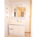 脱衣室も広々とお使いいただけるよう、収納力のある大型の化粧台をご提案しました。