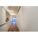 普段使用する時は背面の大容量のカップボードと一緒に広々と使用することができます。使用しない時やお客様が来られた時は、扉を閉めることでキッチンなどの家事スペースを隠し、生活感が出ないように仕上げました。