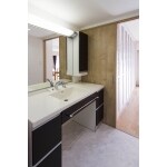 独特な形をしていて広さを持て余していた洗面脱衣室は場所を替えキッチン裏へと移動。 新たに収納も設け、扉も開き戸から引き戸へと変更したことによって使い勝手の良い洗面脱衣室へと変わりました。