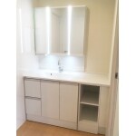 プラン上奥行きが制限されていたので、コンパクトでありながら機能が充実しており、価格もお求めやすいパナソニック製のシーラインをご提案しました。 機能の一つ「ツインラインLED照明」で鏡も手元もはっきりと見える明るい空間になりました。
