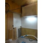 梁やパイプが通りいじれない部分を下地調整し、お施主様がプランしたキッチンを変更することなく、使い勝手が良くなるよう設置しました。