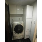 LIXIL洗面化粧台LC 1200mm → 900mm 残りはフリースペース 洗濯パン 洗濯パン上収納 洗濯パン横トールキャビネット