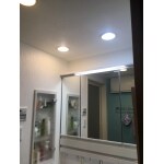 三面鏡全収納にすることで、日々使うものもパッとしまえて、カウンターも広く使えるようになりました。 キャビネットもフルスライドで収納力が格段にアップしました。 施工後、「使いやすくなってフルスライドにして本当によかった」とうれしいお言葉をいただきました。