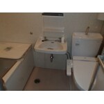 | その他採用機器・設備 | 天井・壁パネル…アイカ工業 FYA1981ZMN(大理石調)/床シート…東リ バスナフローレ BNF1002(ピンク柄)/浴槽…W1100/換気扇…三乾王 TYB3011GA/トイレ…ピュアレストQR+ウォシュレットSB手洗付/給湯器…リンナイ 壁貫通型給湯器/ペーパーホルダー*2セット/タオルリング/コーナー収納/洗面棚/タオル掛け/洗面キャビネット/シャワーフック収納/浴室照明/浴室入口折戸パネル張替/洗面器のみ既存品を使用 |