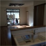 リフォーム後はリビングとDKの間仕切を無くし、LDKが一体になるようにしました。 キッチン扉面材、床、建具等の統一感のある木目を基調としたインテリアに仕上がりました。